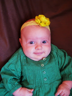 She holds her head up and her hands are her friend; whether trying to suck of her fist or just stare at them, they are her entertainment. At her last appointment she had jumped from the 28% for weight to the 96% weighing 14lbs...that's my girl!