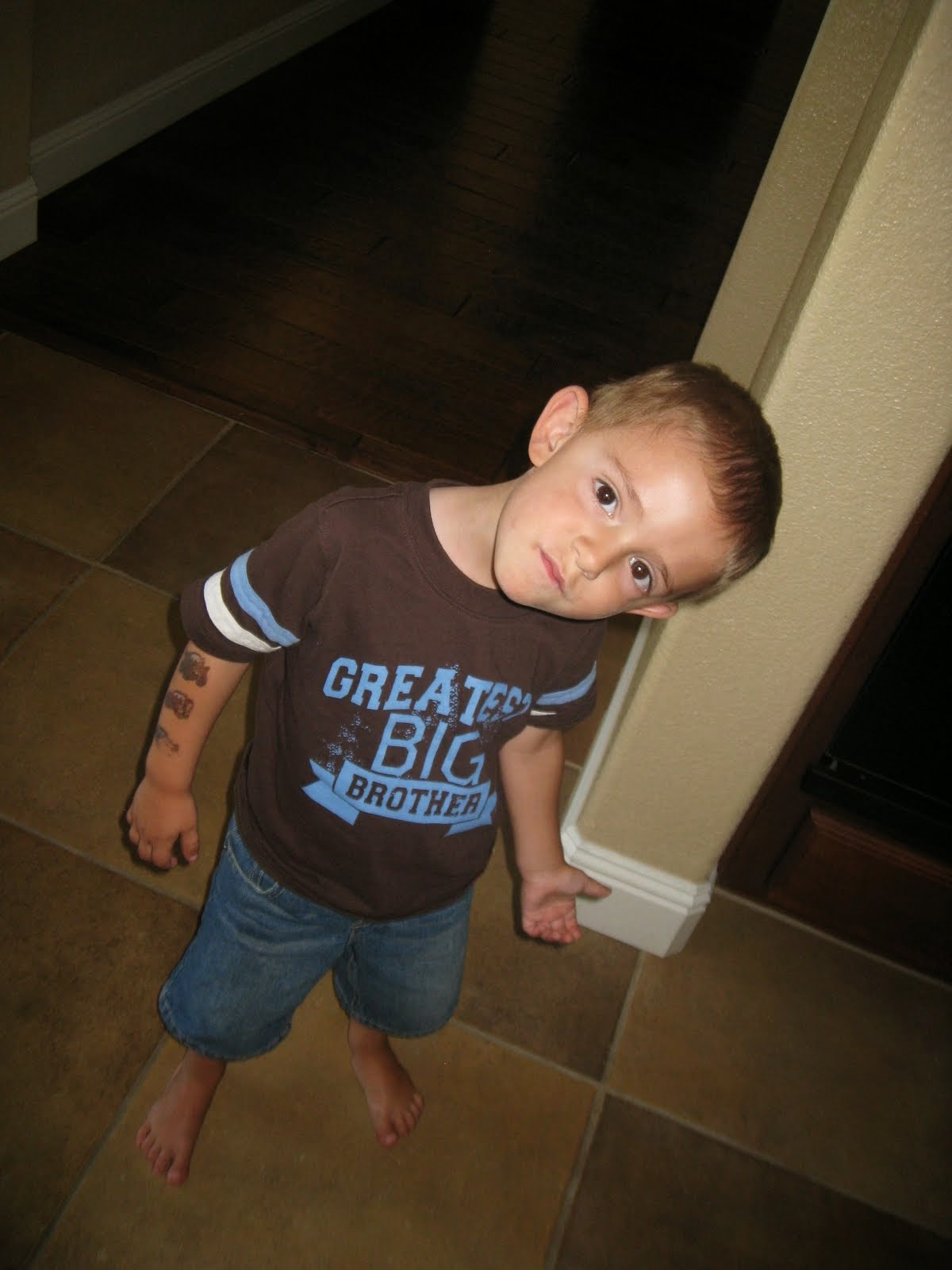 His question of the minute seems to be, Why this and why that? I have to remind myself that is how he learns but I'll be honest sometimes I don't know why...aah! His favorite color remains pink. His interests include: music (mental note to record him singing and playing either guitar or piano--too cute!), anything outside, cartoons, taking pictures, going places, and playing with and I quote, "my garage sale monsters."