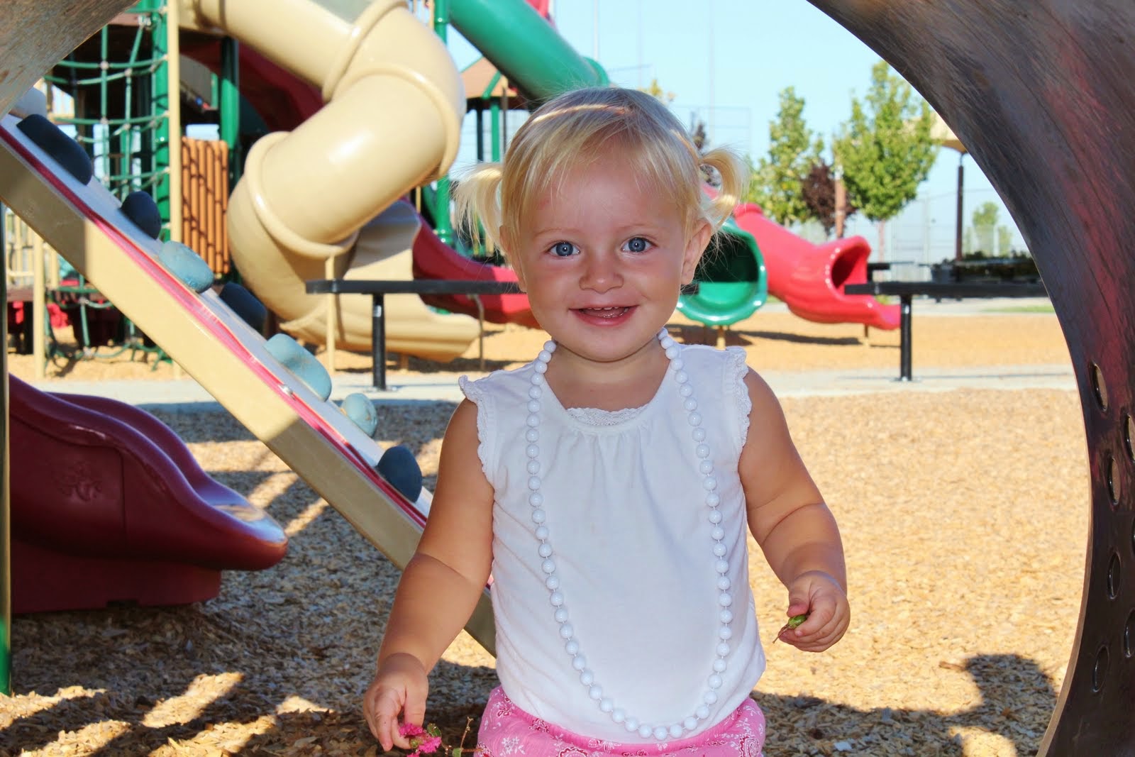 The kids had fun climbing, watching people do pencil rolls down the hill, got to feed the ducks, watching a kid reel in his catch the fish from the stocked pond, and riding their train.