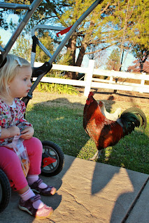 If you've never been to downtown Folsom (or Fair Oaks) there are always chickens/roosters roaming free. These particualr chickens were fearless and came inches away from Caitlin several times before being shooed away.