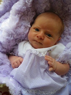 Caitlin is one month today! The dress she is wearing was mine and was given to me by my Grandpa Tom who even today has great fashion sense (a couple years ago he chose and bought a super cute swimsuit for me which happens to be my fav!).
