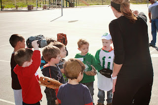 We signed Carson up to play t-ball and today was his first day!  For the next four weeks on Tuesday and Thursday afternoons he has t-ball.  His friend {the other Carson} is also on his "team" so that was fun for them.  Due to the plentiful rain storms we have had lately, the field was too wet and muddy so they met on the black top instead.