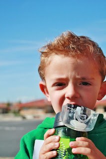 He told me, "that boy was chasing me!" I don't think he really understood what was going on! One practice down and Carson had fun! As we were leaving the school Carson told me "I like my coach, she was nice!"...he may or may not have been influenced by the dum-dum he was sucking at the time :)