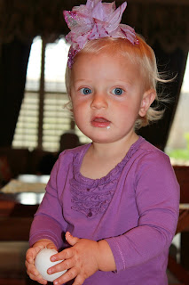 Caitlin was really interested in participating from start to finish. Even when she was still in her pj's when I was setting up she wanted to be right in the action! Eventually, Cait ended up smashing and eating an egg and then spilling blue dye everywhere which actually ended up being kind of artistic because I cleaned it up with the white towel--guess it's our forever Easter towel now which works because it matches Carson and Andrew's Easter ties!