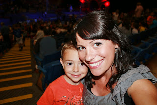 A few days ago I had heard that the "real" circus was in town and suggested that we could go because I remember going when I was a kid and I loved it! So we surprised Carson! Caitlin is still young and restless so we made it a mommy and me date instead of fun for the whole family. Carson was super excited just to see the Power Balance Pavilion and we hadn't even made it into the arena!