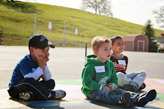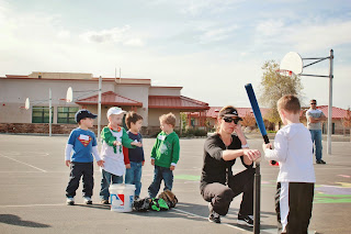 We signed Carson up to play t-ball and today was his first day! For the next four weeks on Tuesday and Thursday afternoons he has t-ball. His friend {the other Carson} is also on his "team" so that was fun for them. Due to the plentiful rain storms we have had lately, the field was too wet and muddy so they met on the black top instead.